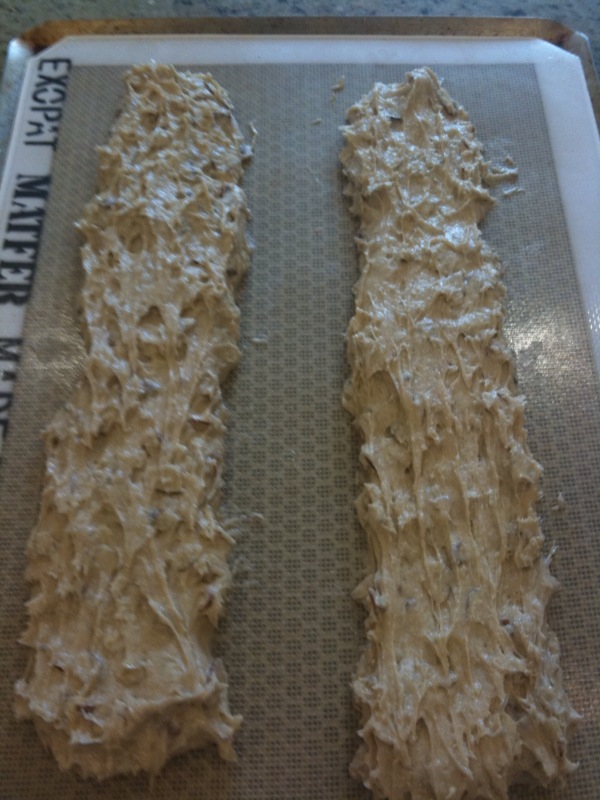 8. Heat oven to 350°F again. Once oven is hot, place biscotti back into oven. Bake until they are browned and crunchy, about 16-20 minutes.