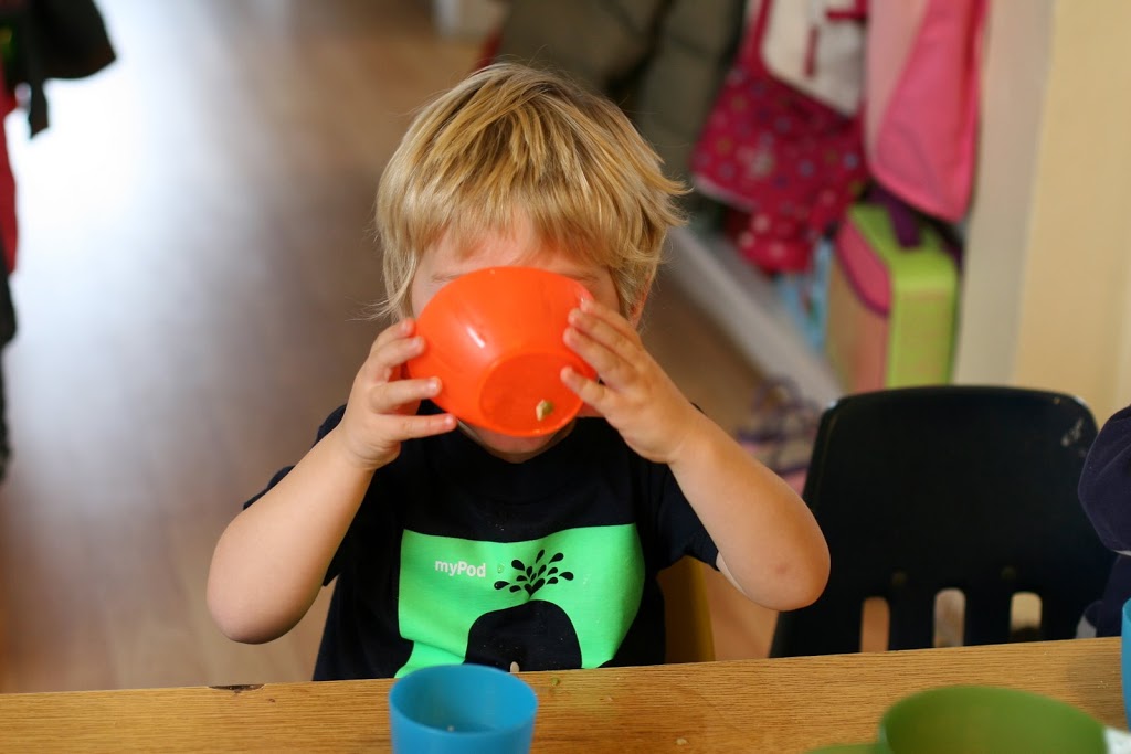 One day last week, I went to my son’s pre-school to help with their snack. I had decided to make the soup for them as a final test. There was a table of about 10 children, helping to identify the veggies before they went in the pot; they were able to see the cooking process; and most important of all, when it was time to eat, I watched 25 of the 31 children devouring the soup and telling me they liked it, even the ones who aren’t normally as adventurous. It wasn’t just the soup that was warming my heart that day.