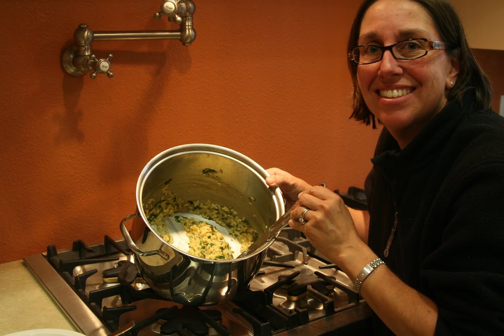 Yes, there I am with the risotto. Notice the pot filler! I didn’t think I needed it but it has already come in handy. I LOVE the stove as well. Backsplash to come…Ok everyone, thanks for listening.
