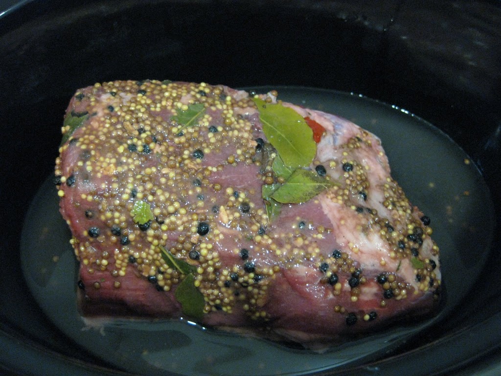 Yes, it can be done. I mean, in theory, it should be a no-brainer, right? Well, I felt the need to test so that’s what I did this week. I really like the Trader Joe’s one. It’s all natural corned beef, no added nitrites/nitrates, hormone free. It comes in a brine with seasonings. I put it in the crock pot, poured a bit of water on top (maybe 1/2 – 1 cup) and let it cook.