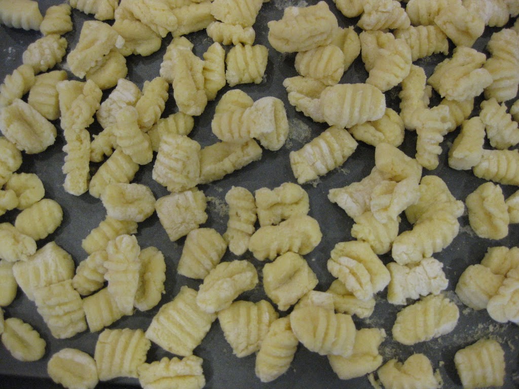 I can still remember my Aunt Vincenzina making gnocchi at our house when she was visiting from Rome. I was only 10 yrs old but can visualize the rolling, cutting and flour, everywhere. I some times forget how much I like them. This weekend, I decided I needed a fix and was motivated. I also realized they are actually pretty easy.