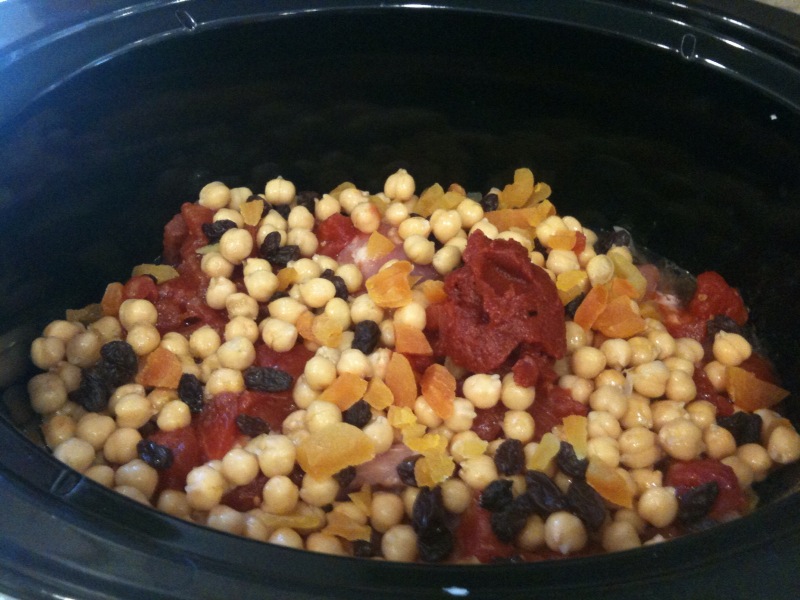 Now that the cookbook is really coming along, I’m deciding which recipes to include. When I looked at the recipe for Moroccan Chicken, I realized it would do well in the crock pot (or slow cooker; one’s just a brand name). In the cookbook, it’s made in a pan but I wanted to try a variation to include. So, here it is.
