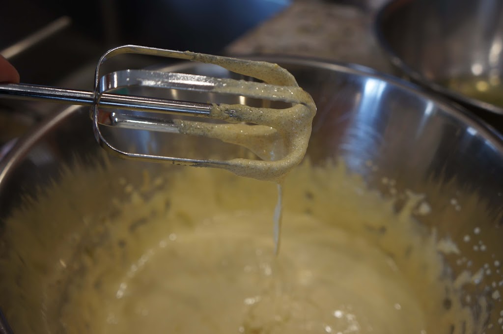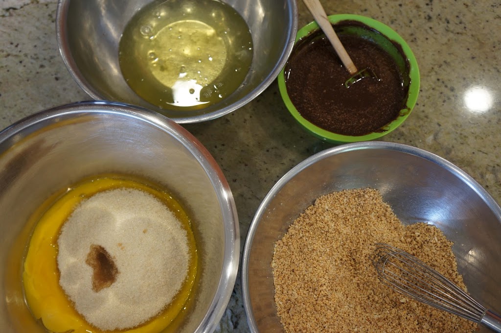 5. Fold in the almond mixture and chocolate mixture to the egg yolks.