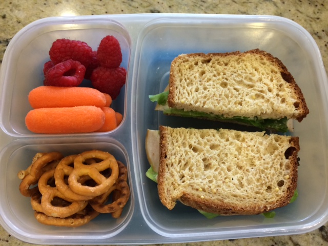 - Switch up the sandwich and/or protein. When it comes to sandwiches, find a bread, roll, or wrap that your child likes (for us it’s Canyon Bakehouse bread or Udi’s flour tortillas). My son tends to prefer certain bread toasted and others not. Mayo really helps to keep the meat moist. I found we were eating a lot of turkey and then tried roast beef and chicken salad. They loved the change. I save the PB&J for days I run out of meat. We also use almond butter.