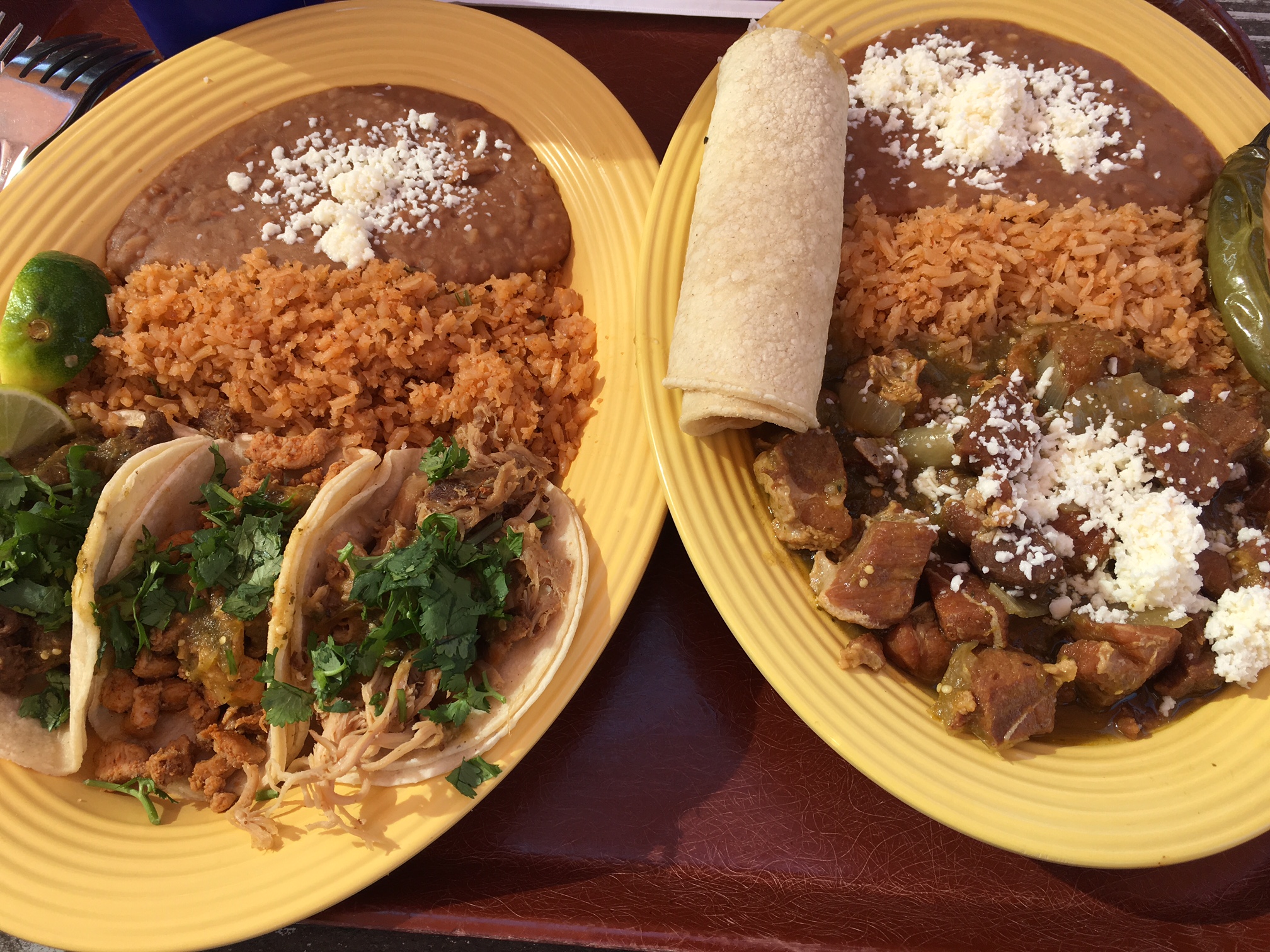 Rancho Del Zocalo Mexican restaurant (Frontierland)-Trio of tacos and pork chile verde.