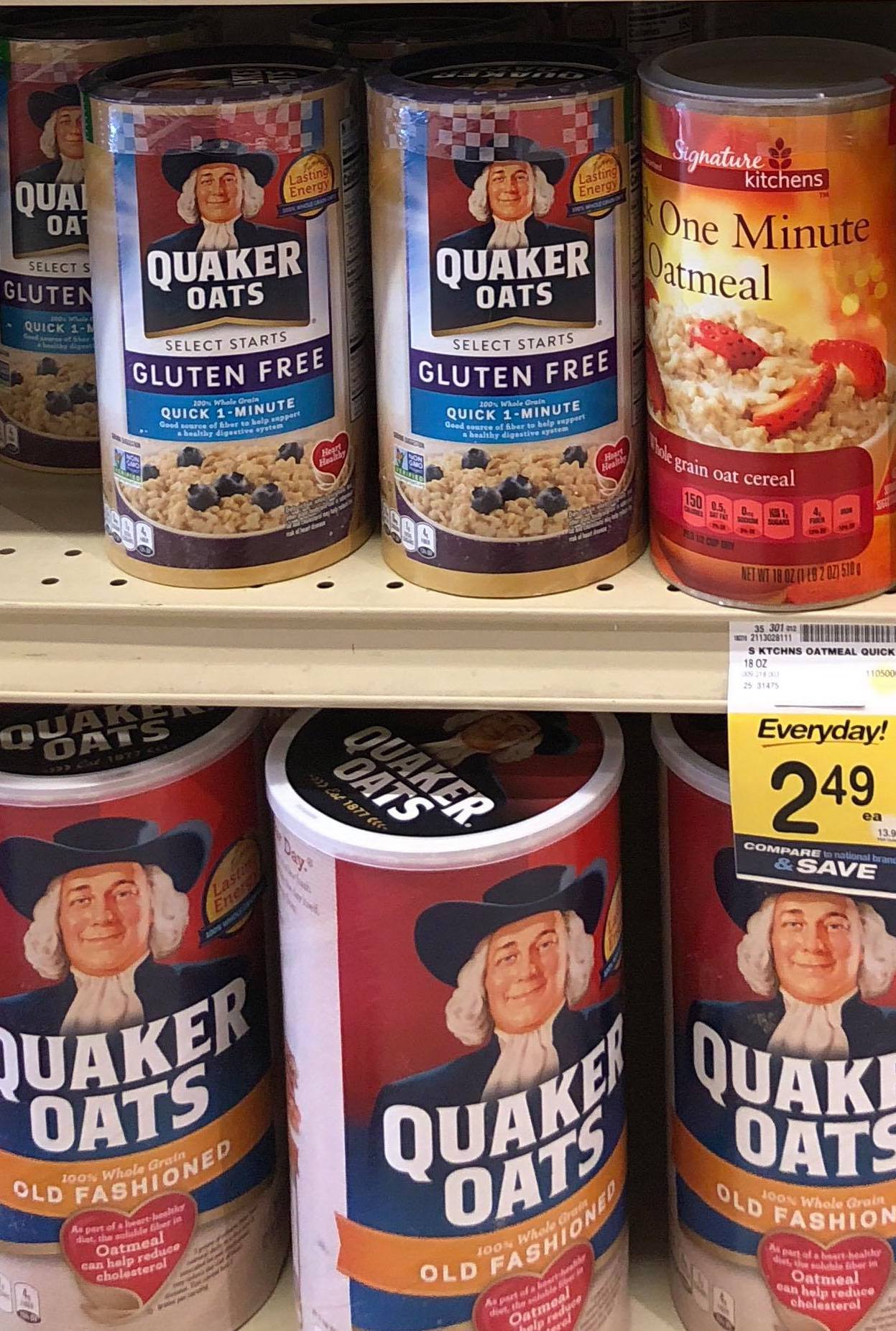 - Oats. Exception/alternative: gluten-free oats or another gluten-free grain cereal. This is really surprising to a lot of people. There are three things about oats you need to know: oats can be contaminated when they are grown near other gluten grains; oats can be contaminated during processing in the factory and on the same equipment; and some people cannot tolerate oats, even if they are gluten-free. Furthermore, some cereal boxes claim a gluten-free status (for example, Cheerios) but the testing is not always accurate. I encourage you to do your research. We don’t eat anything with oats unless it’s certified. Ok, so I just noticed in this picture (I think I didn’t have my glasses on at the time) that the oats on the higher shelf say “Gluten Free”. So does that mean it’s certified? No. Here’s what is on the Quaker Oats website. With 139 years of oat-milling experience under our belts, our experts developed a breakthrough cleaning system to remove these other grains so that we can deliver gluten free oatmeal* with the quality consumers expect from Quaker. Uhm…Quaker…you may know how to mill oats, I’ll give you that. But cleaning oats to make them gluten-free?? Do you test each batch? Gee, it’s amazing how wheat and gluten sort of look like the same grain. I’ll pass. I feel like things like this make it so confusing for the consumer.