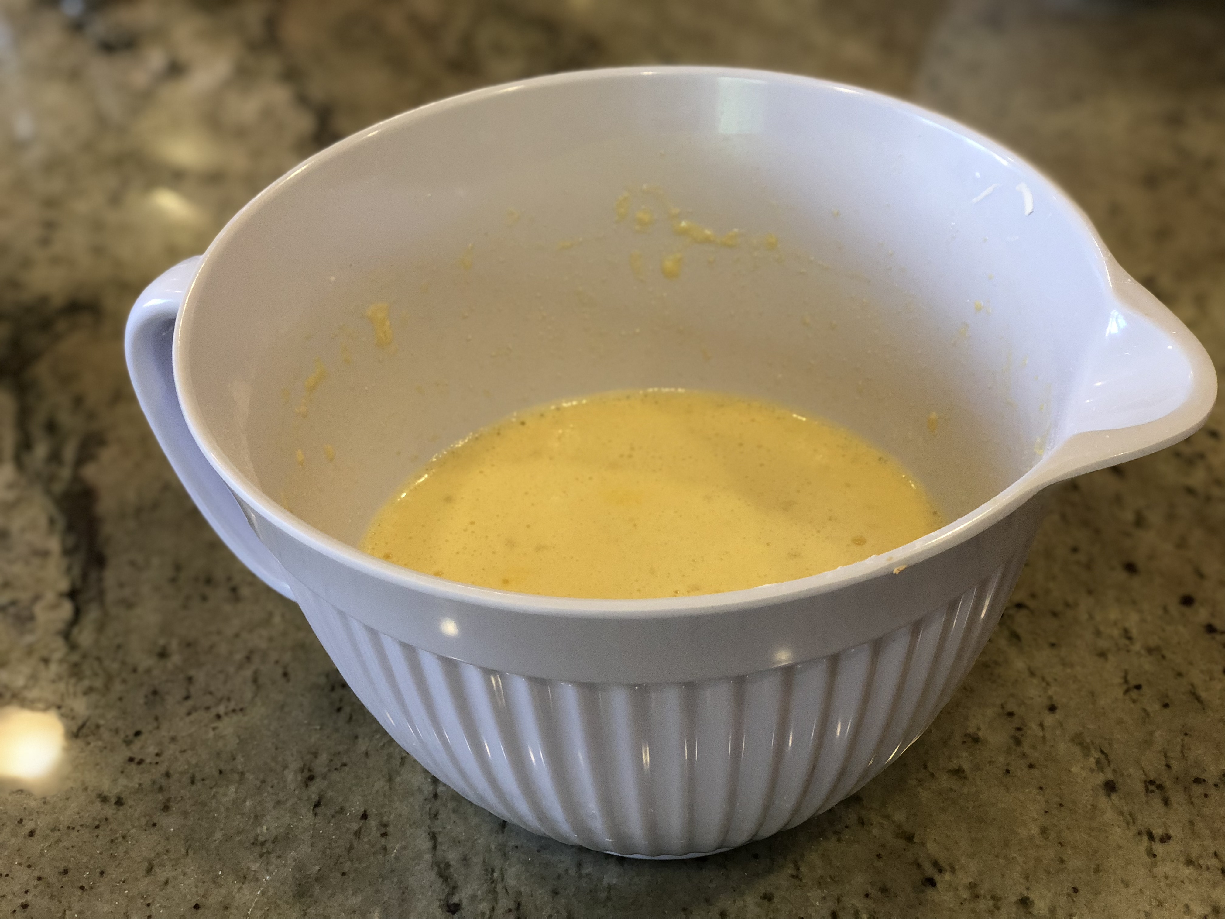 - Mix the eggs, milk substitute, olive oil, and salt in a medium bowl.